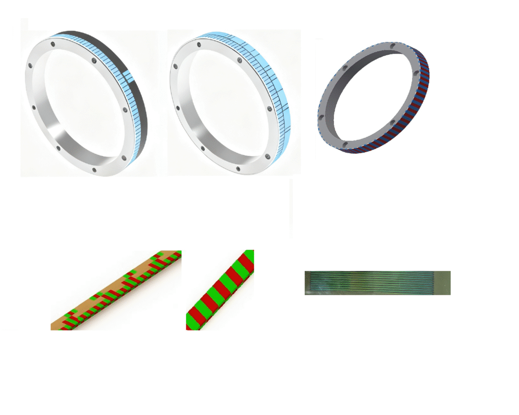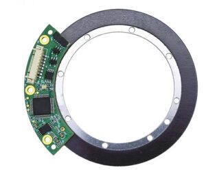 Двухдорожковый диск энкодера является целевым компонентом абсолютного магнитного энкодера. Магнитный энкодер вычисляет абсолютное положение по разности фаз между двумя нониевскими (верньерными) магнитными сигналами. Наиболее типичное применение на данный момент — в сочленениях роботов, где требуется: Точное позиционирование движений Минимальное монтажное пространство
